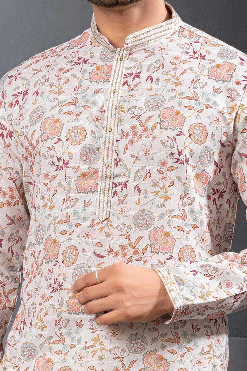 Multicoloured Printed Cotton Silk Kurtas For Men (NMK-8774)