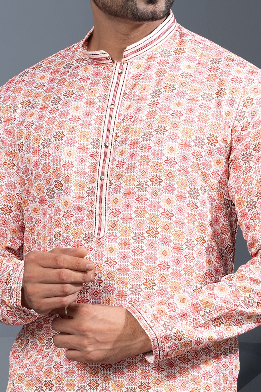 Description | Multicoloured Printed Cotton Silk Kurta Pajama is designed with lace work. Comes with a bottom. Actual product colors, patterns and designs may slightly vary. |