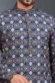 Navy Blue Printed Cotton Silk Kurta Pajama (NMK-8771)