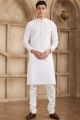 Off White Art Silk Kurta Pajama (NMK-8570)