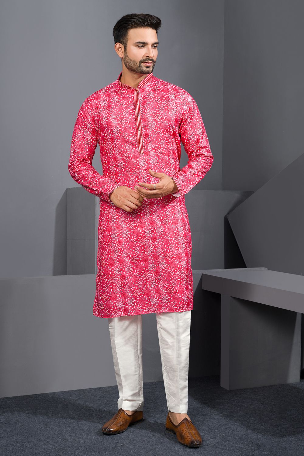 Pink Printed Cotton Silk Kurta Pajama (NMK-8756)
