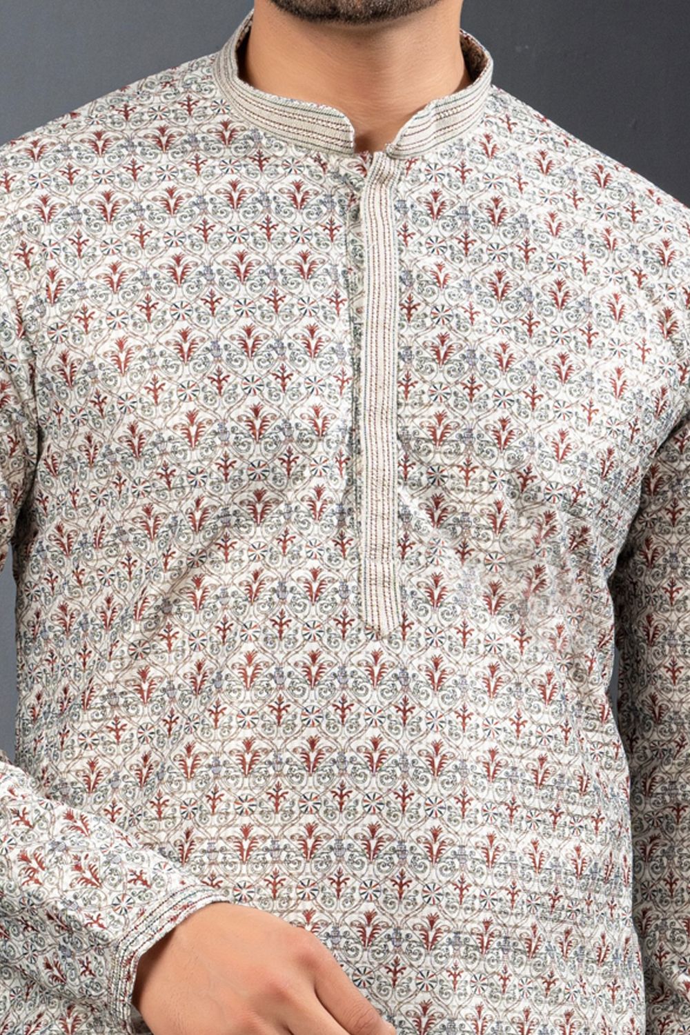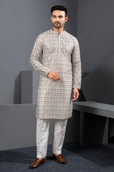 Printed Cotton Silk Kurta in Multicoloured (NMK-8777)