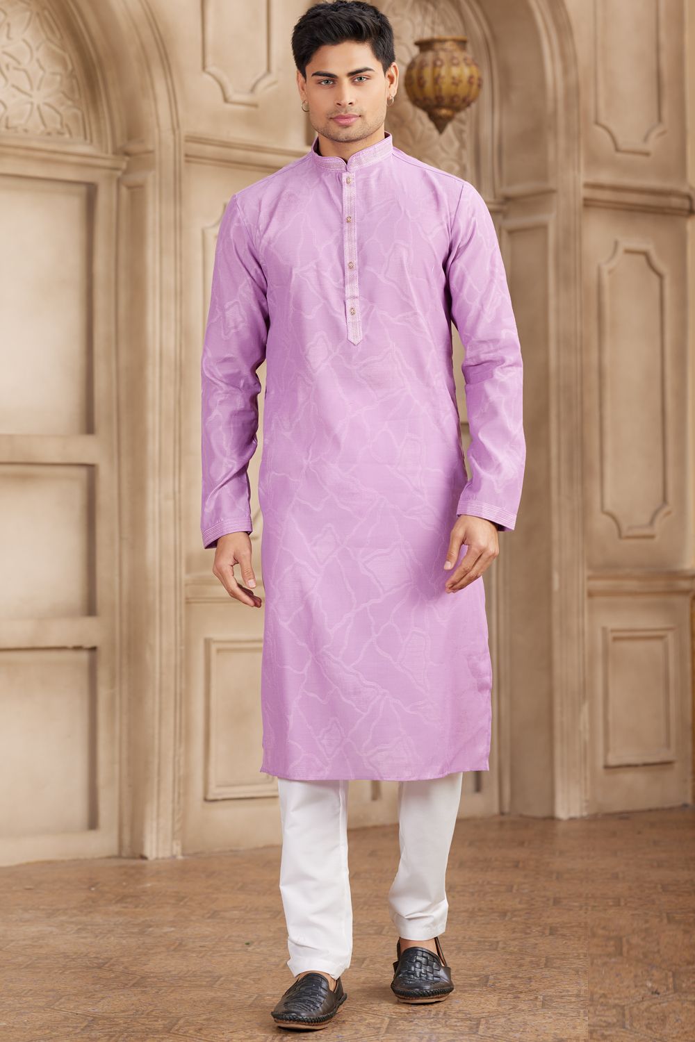 Description | Purple Art Silk Kurta Pajama is designed with self brocade and pintux work. Comes with a bottom. Actual product colors, patterns and designs may slightly vary. |