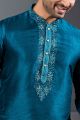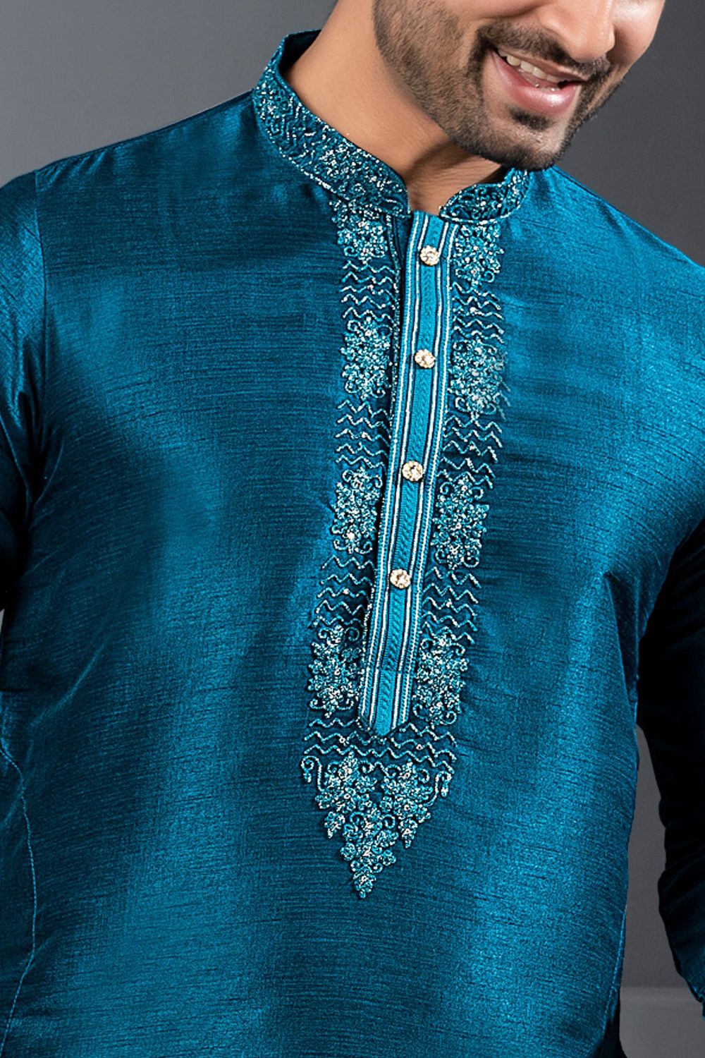 Description | Rama Blue Banglori Silk Kurta Pajama is designed with embroidery work. Comes with a bottom. Actual product colors, patterns and designs may slightly vary. |