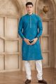 Teal Blue Art Silk Kurta Pajama (NMK-8573)