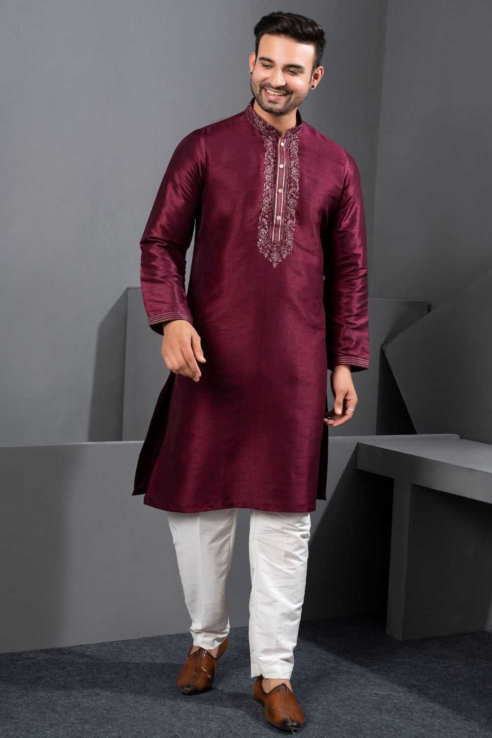 Wine Banglori Silk Kurta Pajama (NMK-8719)