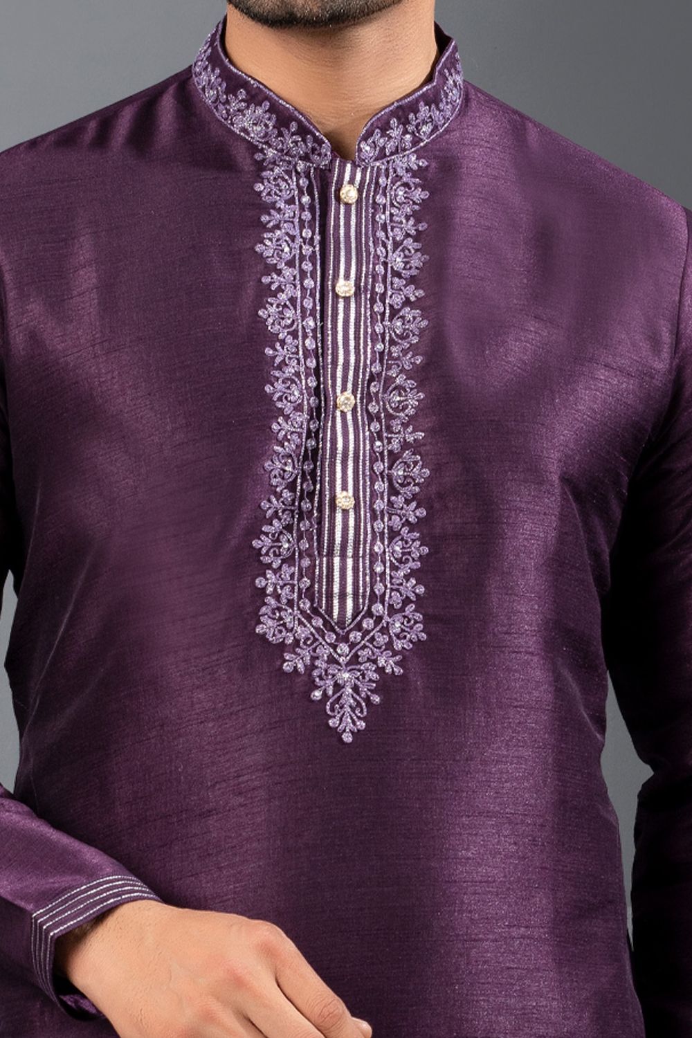 Description | Wine Banglori Silk Kurta Pajama is designed with embroidery work. Comes with a bottom. Actual product colors, patterns and designs may slightly vary. |