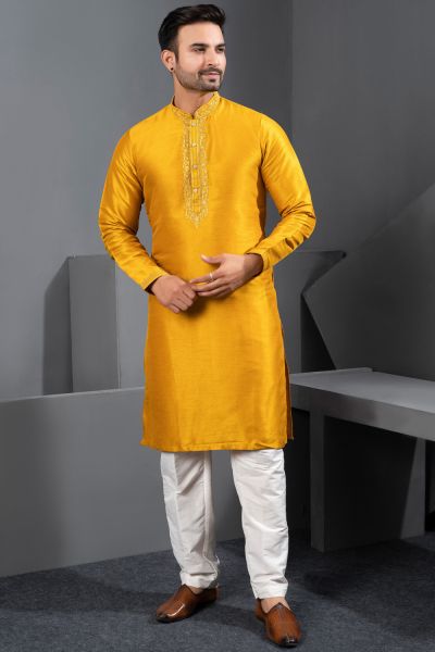 Yellow Banglori Silk Kurta Pajama (NMK-8714)