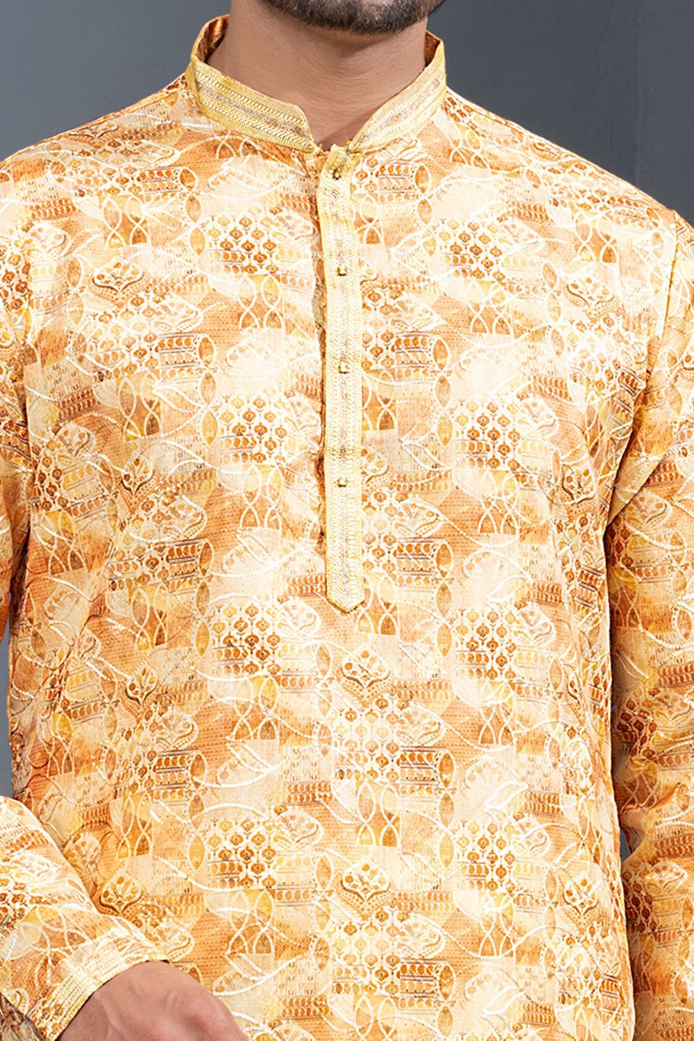 Yellow Printed Cotton Silk Kurta Pajama (NMK-8764)