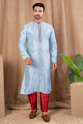 The traditional kurta pajama shall not just have to be saved for cultural occasions. We have given the default designs a major glow-up! You can now style our selection of fancy kurta pajamas as party-wear, merging the contemporary trends with a cultural essence. The Blue Banarasi Art Silk Kurta Pajama, in particular, shall attract a bunch of compliments!