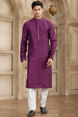 They present our expert craftsmanship, radiating an irresistible allure. The timeless interplay between the gloss and edge infuses depth into your Indian outfits. Make sure to check out the Purple Jacquard Kurta Pajama if you’re hoping to shine through the night!