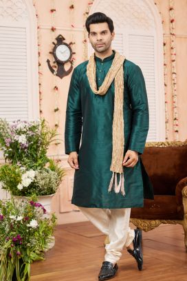 Check out the Green Embroidered Art Silk Kurta Pajama if you’re ready to be bewitched by your new favourite kurta pajama pick.
