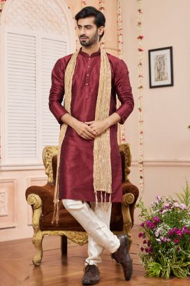 A kurta pajama set shall be a great gift idea for weddings. Choose from a wide range of textiles offered by us, including brocade, silk, velvet, etc.