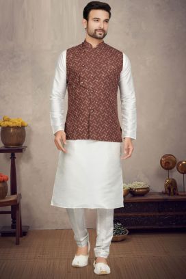- Mix & Pair with Different Textures: Style your jacquard and art dupion Nehru jacket with contrasting textures. Experiment away with faux leather or even denim picks for added visual depth.