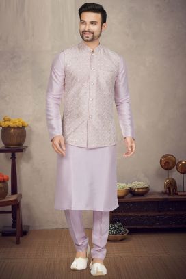 Jackets like the Lavender Art Silk Nehru Jacket on top of kurtas are modern alternatives to the more traditional sherwanis, giving traditional Indian attire a contemporary glow-up.