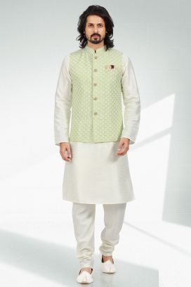 At Nihal Fashions, we offer Nehru jacket options across premium fabrics like silk, cotton, jacquard, Lucknowi cloth, art dupion, etc.