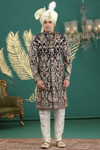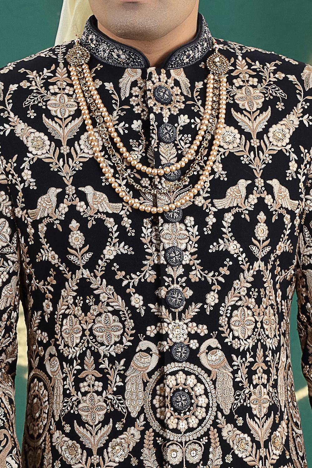 Black Art Silk Sherwani is designed with all over sequins and computer thread work. Comes with a bottom. Actual product colors, patterns and designs may slightly vary.