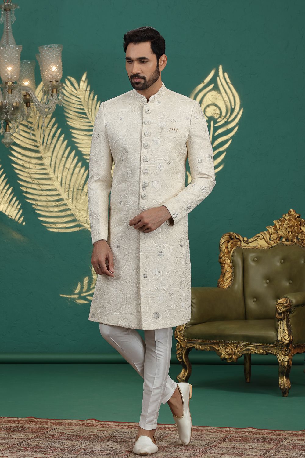 Cream Art Silk Sherwani for Men (NMK-8605)