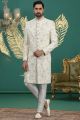 Cream Art Silk Wedding Sherwani (NMK-8600)