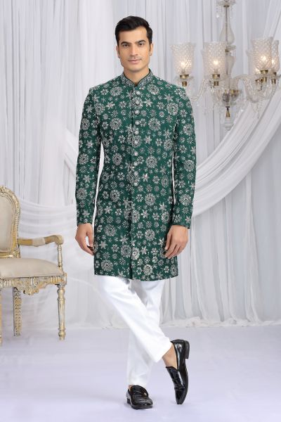 Green Art Silk Indian Sherwani (NMK-8647)