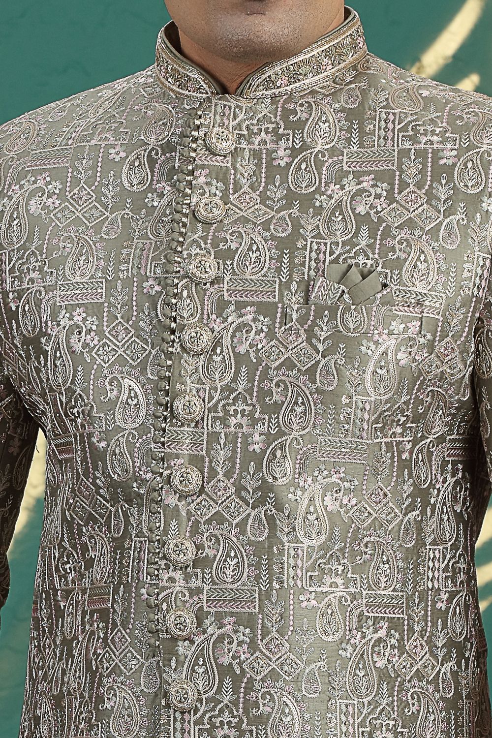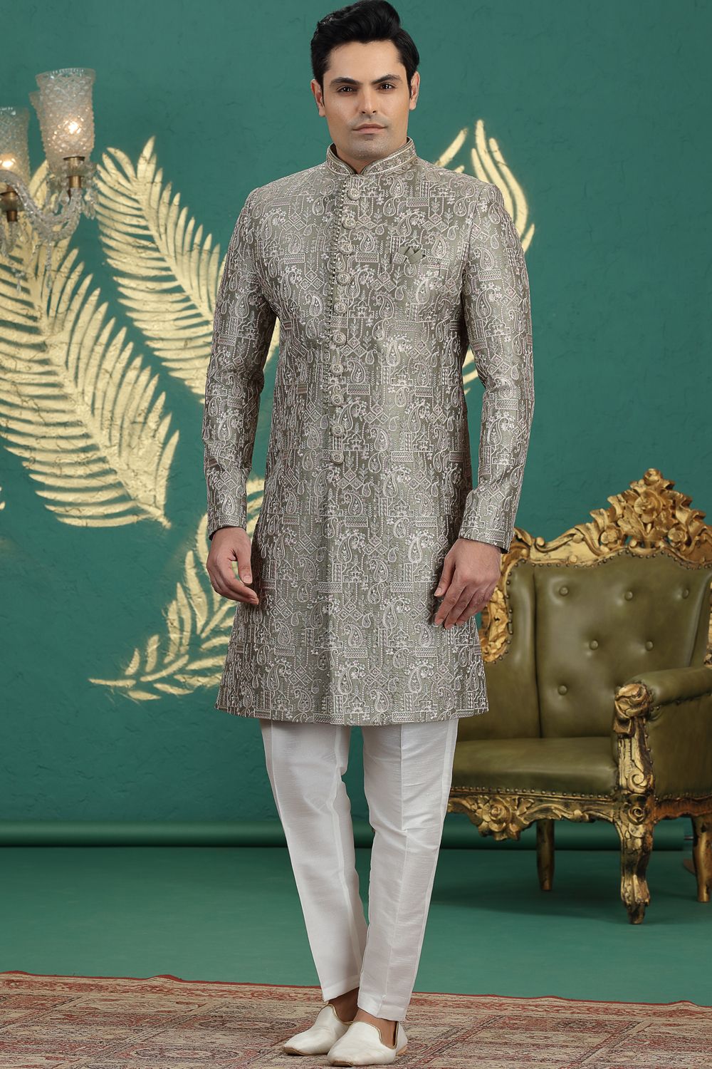 Green Art Silk Wedding Sherwani (NMK-8621)