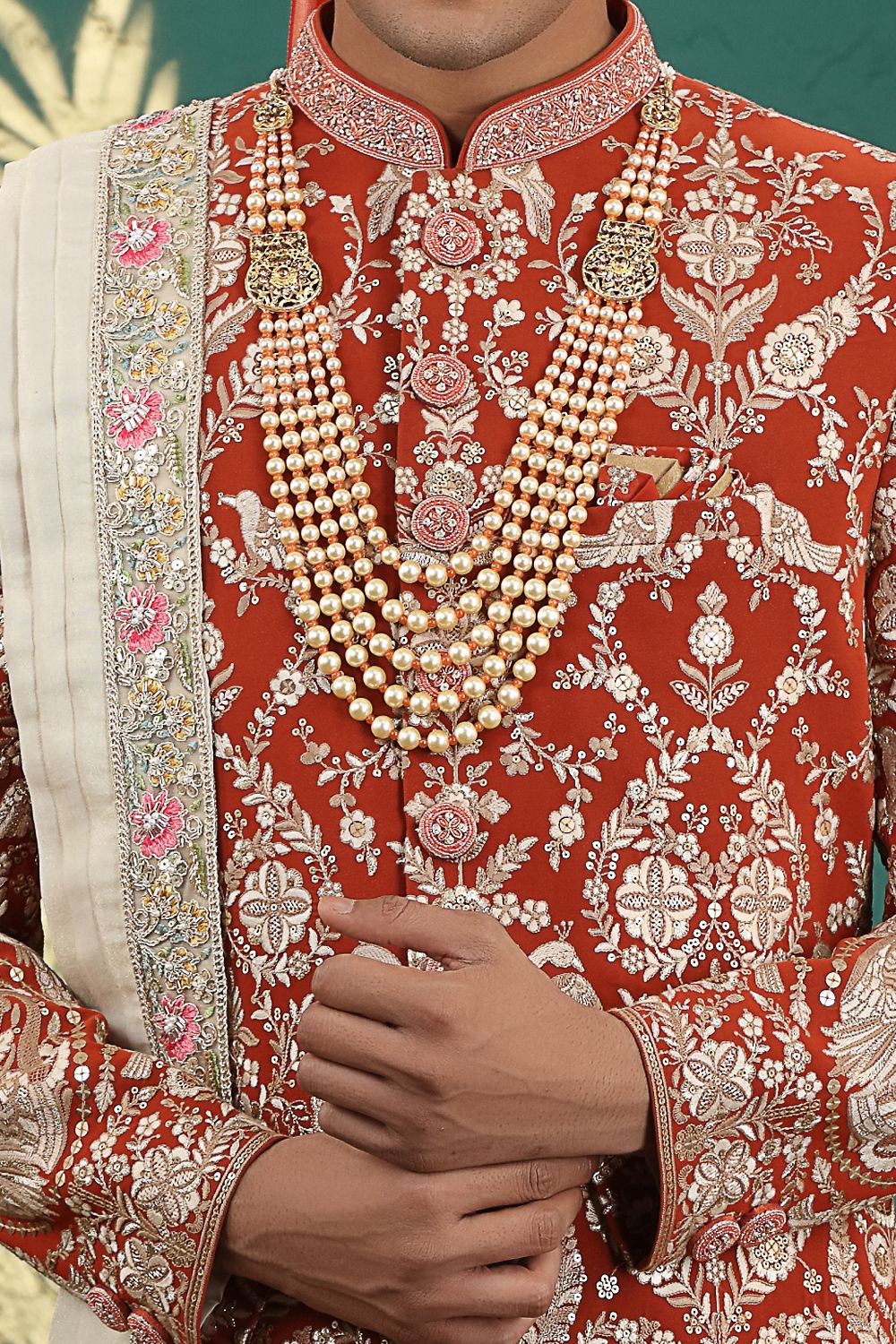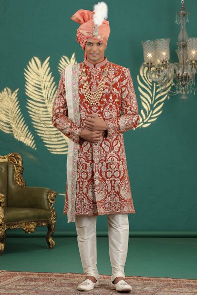Rust Art Silk Mens Sherwani (NMK-8597)