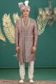 Wine Banarasi Jaquard Sherwani (NMK-8613)